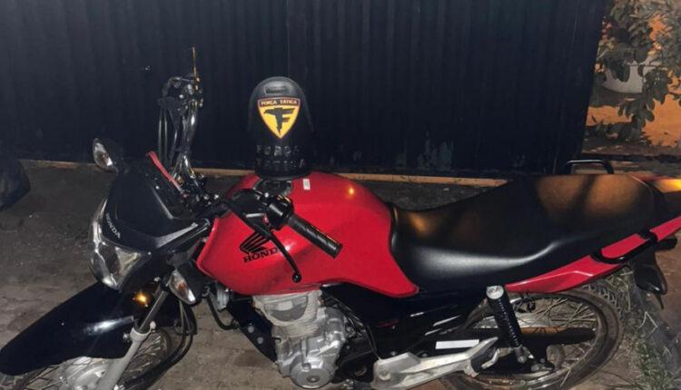 Durante a ação, os policiais identificaram um motociclista que correspondia às características informadas, conduzindo uma motocicleta Honda 160 Start vermelha. Ao perceber a presença da polícia, o suspeito tentou se evadir, sendo imediatamente abordado pelas equipes.