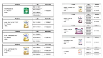 A decisão foi oficializada por meio da Resolução nº 32/2026, publicada nesta quarta-feira (7), e envolve produtos das marcas Nestogeno, Nan Supreme Pro, Nanlac Supreme Pro, Nanlac Comfor, Nan Sensitive e Alfamino, fabricados pela Nestlé Brasil Ltda..