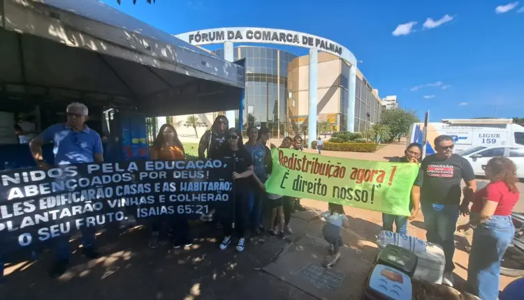 Nesta sexta-feira (30), um grupo de aprovados no Concurso da Secretaria de Educação do Tocantins (SEDUC), realizado em 2023, realiza uma manifestação em frente ao Fórum de Palmas. Os manifestantes buscam apoio da sociedade e do governo estadual para a convocação dos aprovados e a redistribuição das vagas disponíveis na rede estadual de ensino.