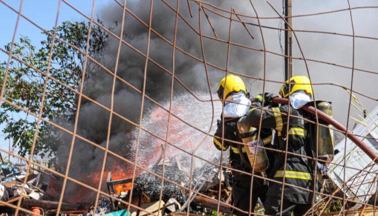 Bombeiros Militares combatem incêndio em Ferro Velho na 812 sul