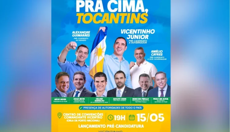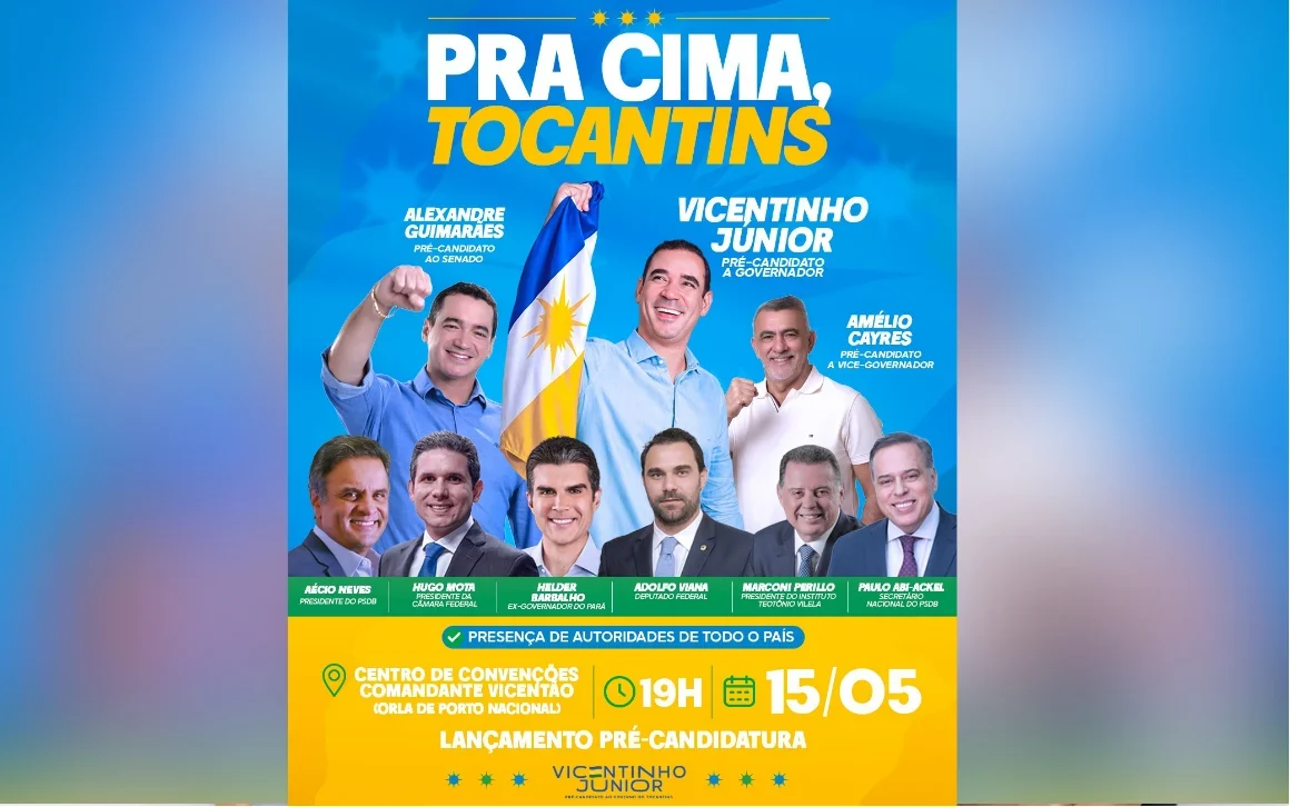O PSDB (Partido da Social Democracia Brasileira) e o MDB (Movimento Democrático Brasileiro) farão no dia 15 de maio, em Porto Nacional, o lançamento oficial das pré-candidaturas de Vicentinho Júnior ao governo do Estado; de Amélio Cayres a vice-governador e de Alexandre Guimarães ao Senado (MDB). O ato será realizado no Centro de Convenções Vicente de Paula Oliveira – Comandante Vicentão.