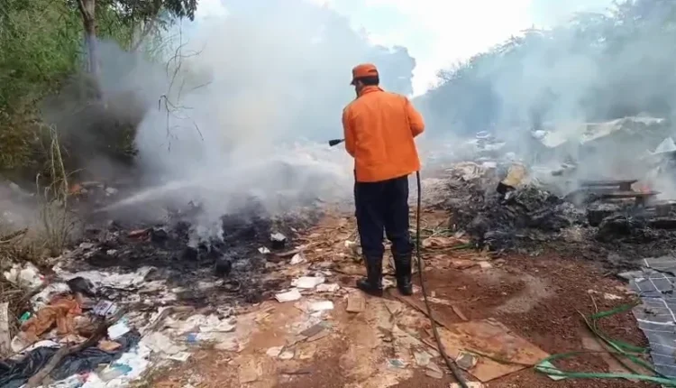 Segundo a Defesa Civil, o incêndio ocorreu em um local utilizado para descarte irregular de resíduos, com presença de materiais como madeira, isopor, papelão, plásticos e restos de construção.