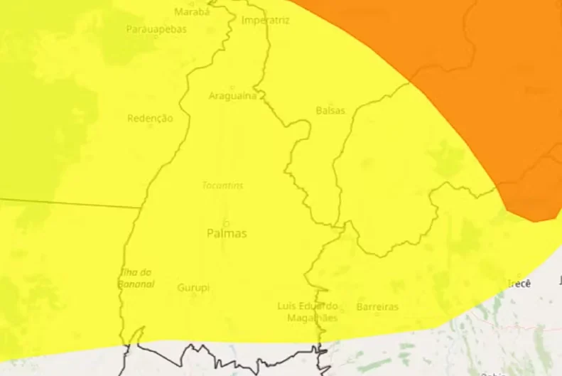 O Instituto Nacional de Meteorologia (Inmet) emitiu alerta amarelo de perigo potencial para quase todos os municípios do Tocantins. O aviso de chuvas intensas segue válido até as 10h de sexta-feira (20) e abrange todas as regiões do estado, exceto a parte mais ao sul.