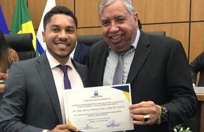 Durante a entrega de certificados, Jucelino concedeu o documento para o advogado Dr. João Marcos Batista.