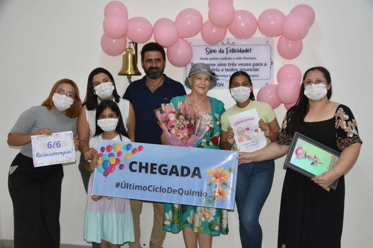 Após seis meses de acompanhamento na Unidade de Assistência de Alta Complexidade em Oncologia (Unacon), Rosenildes Dias Noleto, de 63 anos, comemorou a recuperação ao lado da família e da equipe de saúde.