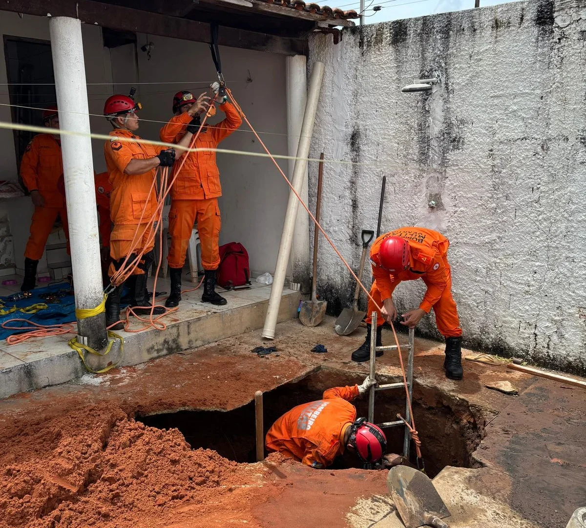As equipes iniciaram imediatamente os trabalhos de resgate, utilizando ferramentas manuais e equipamentos de salvamento terrestre para retirar o homem com segurança.