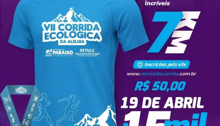 A Prefeitura de Paraíso do Tocantins, por meio da Secretaria Municipal de Turismo, Lazer e Cultura (Setulc) abriu na segunda-feira, 3, as inscrições para a VII Corrida Ecológica da Aleluia, que será realizada no dia 19 de abril, Sábado de Aleluia. Nesta edição os participantes concorrerão a uma premiação de R$15 mil.
