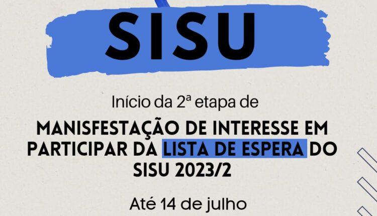 A Universidade Federal do Tocantins (UFT) convoca os candidatos que manifestaram interesse em participar da Lista de Espera do Sisu no sistema Sisu/MEC para realização da Manifestação de Interesse no Sistema de Ingresso na Graduação (Sigrad/UFT).Os candidatos podem realizar o procedimento até 14 de julho de 2023.